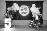 Red photo zone for birthday celebrations. Large elegant photo zone with lighting.
