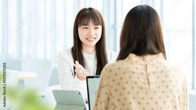 ミーティングをする2人の若い女性・ビジネスウーマン