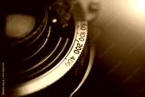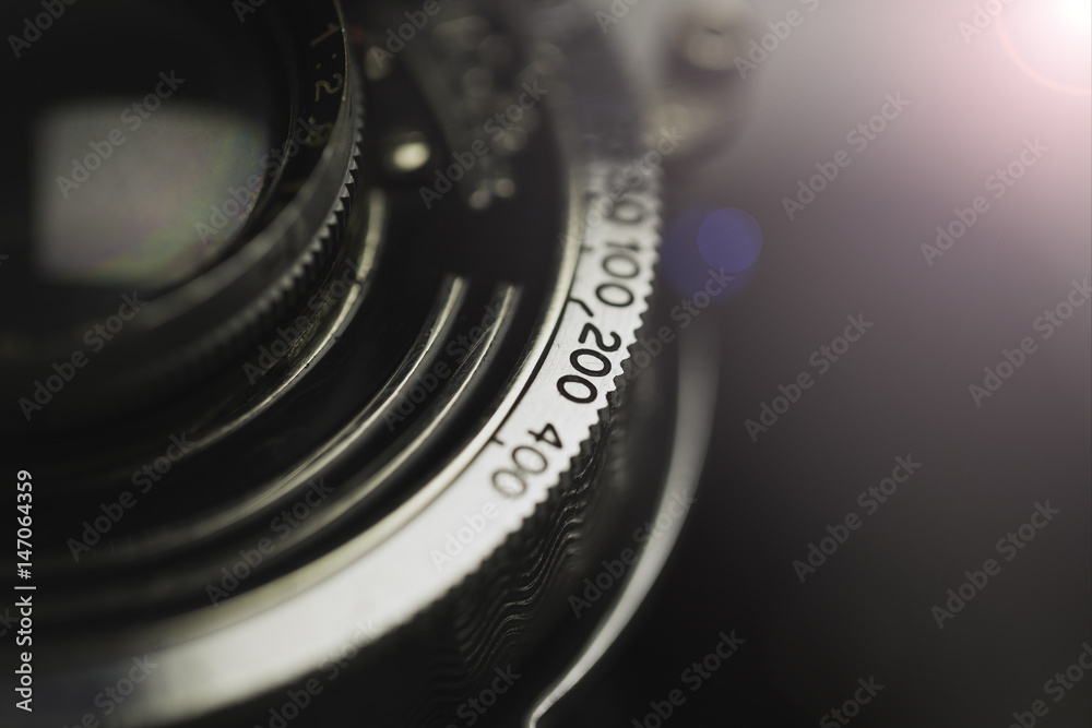 Studio shot of old vintage photo camera close up