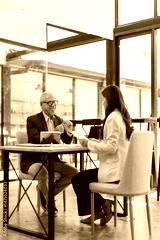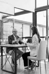 Financial Two business people analyze the graph of the company's performance to create profits and growth, Market research reports and income statistics, Financial and Accounting concept.