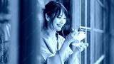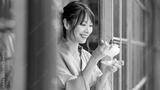 縁側でかき氷を食べる浴衣姿の日本人女性