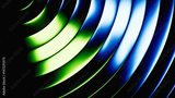 3d rendering. Abstract geometric background. Polished chrome texture with blue green gradient. Ribbed glass illuminated with neon light
