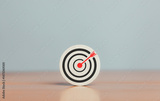 Businessman showing virtual target icon for business purpose, strategic planning for business growth and target customer group. Set business objectives goals, value, growth.