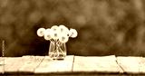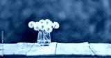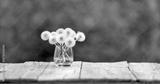 Dandelions in Glass Vase on Wooden Table in Morning Garden – Natural Still Life. Perfect for nature, still life, minimalism, eco lifestyle, or seasonal spring and summer concepts.