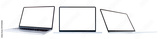 Modern thin laptop computer in different angles, screen mockups, isolated transparent background