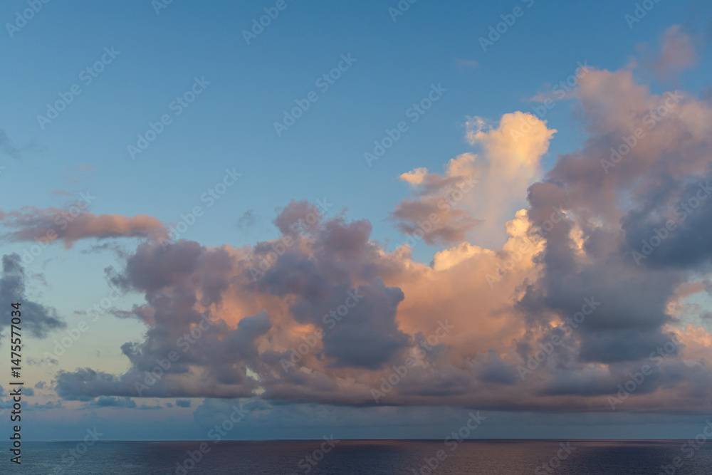 Lush Clouds Over Pacific Ocean Near Hawaii During Sunset