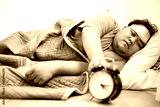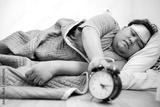 Asian Overweight Man Turning Off Ringing Alarm Clock in The Morning