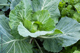Fresh Green Cabbage Plant Growing in Garden – Close-Up of Brassica Oleracea with Textured Leaves in Natural Sunlight for publication, poster, calendar, post, wallpaper, cover. High quality photography