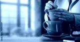 Woman Making Tea in Cozy Kitchen – Warm Morning Light and Home Atmosphere. Peaceful moment in a warm, naturally lit kitchen. home comfort, and mindful daily rituals. Copy space.
