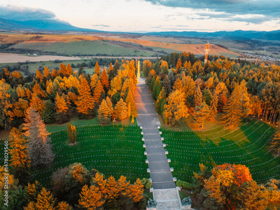 Sunset over Liptov region with Liptovska Mara lake and Tatras mountains around. Liptovsky mikulas landspace, slovakia.