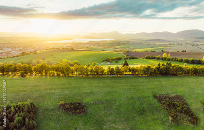 Sunset over Liptov region with Liptovska Mara lake and Tatras mountains around. Liptovsky mikulas landspace, slovakia.