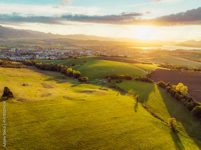 Sunset over Liptov region with Liptovska Mara lake and Tatras mountains around. Liptovsky mikulas landspace, slovakia.