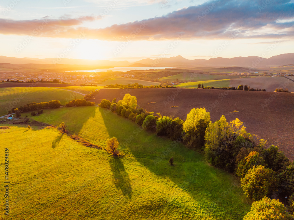 Sunset over Liptov region with Liptovska Mara lake and Tatras mountains around. Liptovsky mikulas landspace, slovakia.