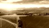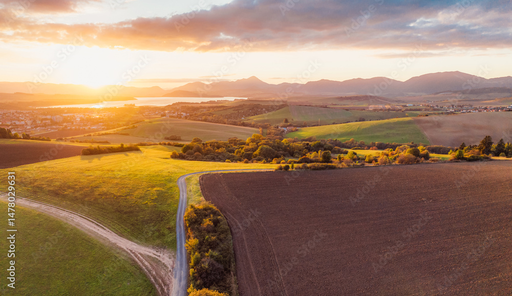 Sunset over Liptov region with Liptovska Mara lake and Tatras mountains around. Liptovsky mikulas landspace, slovakia.