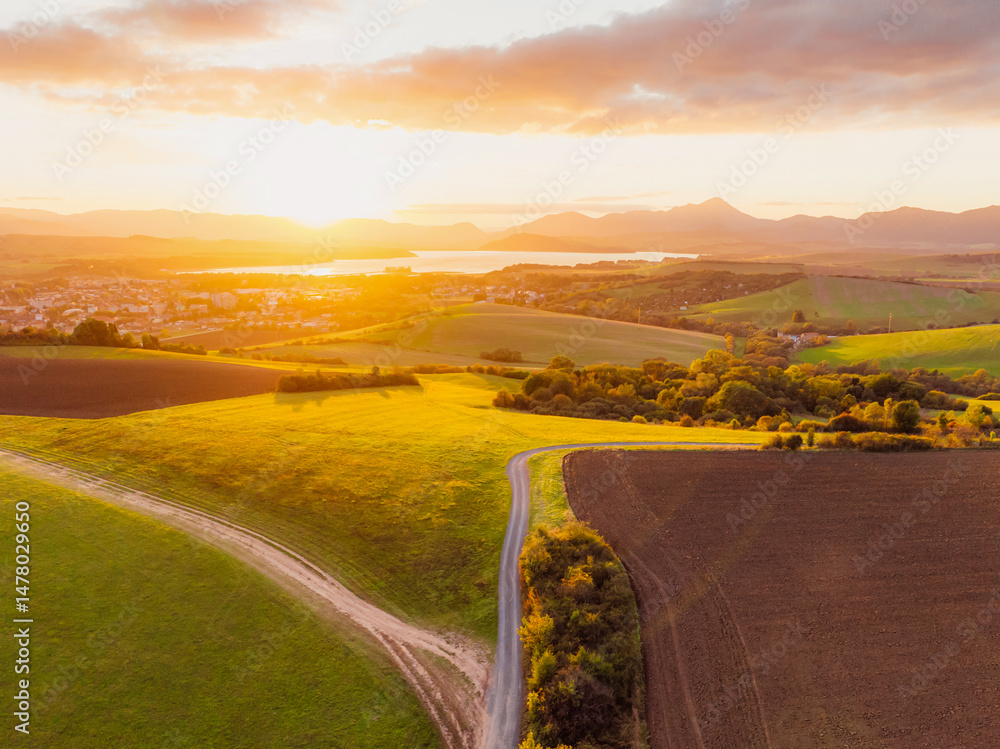 Sunset over Liptov region with Liptovska Mara lake and Tatras mountains around. Liptovsky mikulas landspace, slovakia.