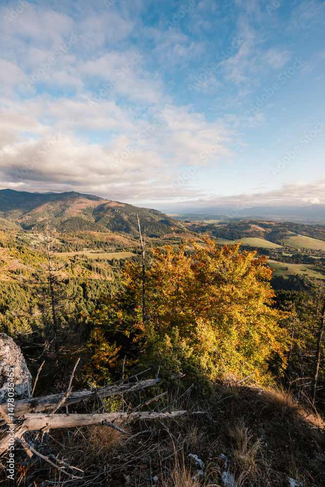 Sunset over Liptov region with Tatras mountains landspace, Slovakia.