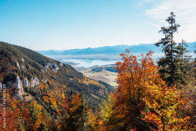 Liptov region Hiking in Tatras mountains to autumn cerenova rock view near Liptovsky Mikulas , slovakia.