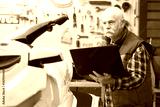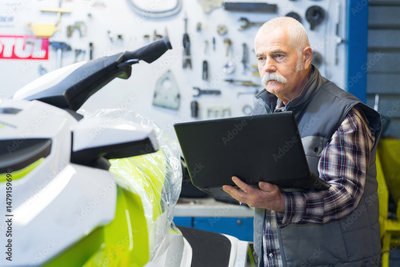 senior man using laptop for checking prices over the internet