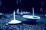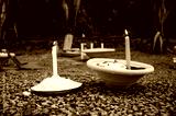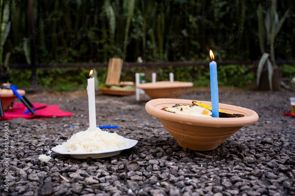 offerings and religious obligations of Umbanda, candles, bowl and bowl with food