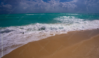 Turquoise sea beach lagoon. Sunlit sea beach shore. Serene sea beach escape. Wavy motion. Scenic sea beach landscape.