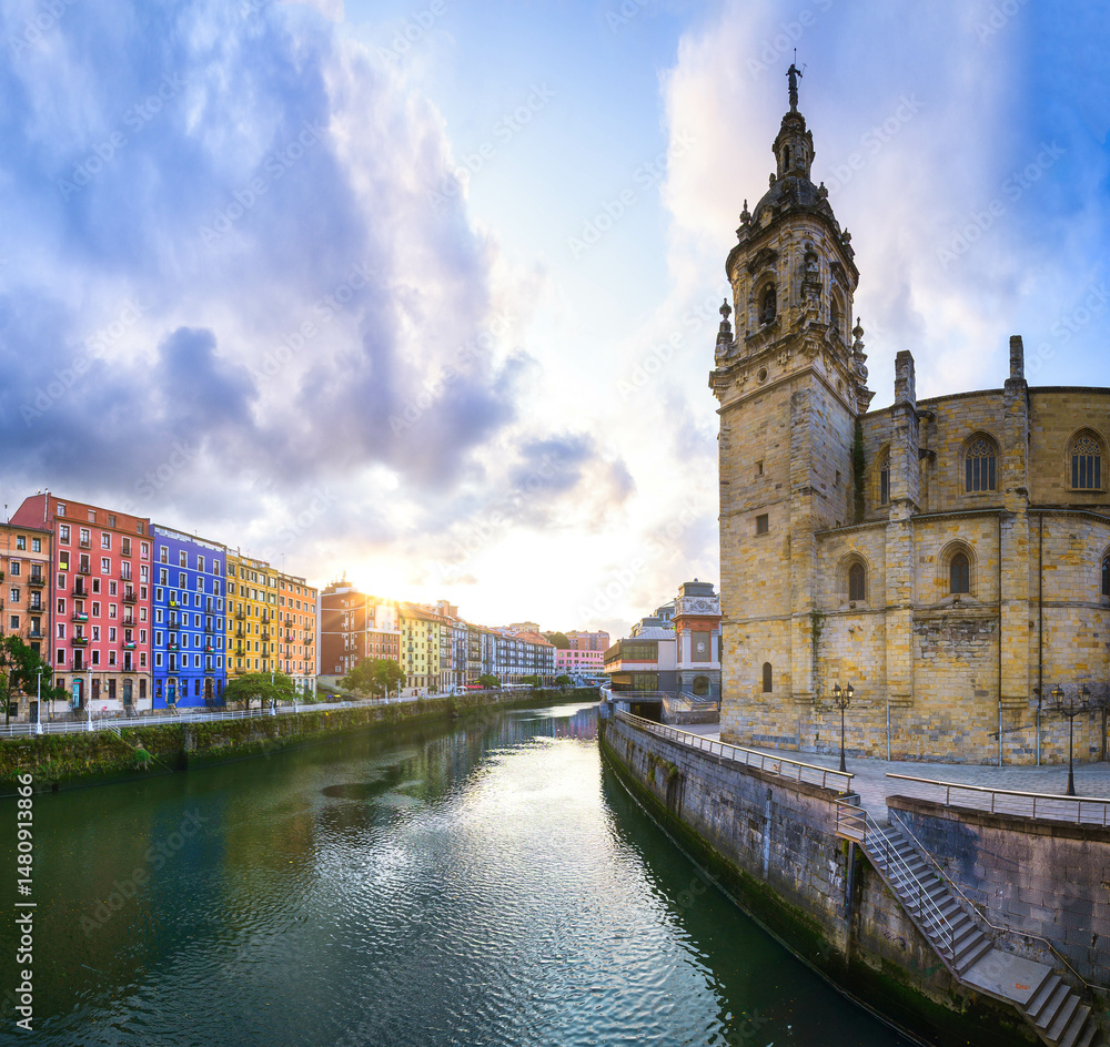 Panoramic view of bilbao old town with san Anton church, Bilbao, Basque country, Spain