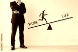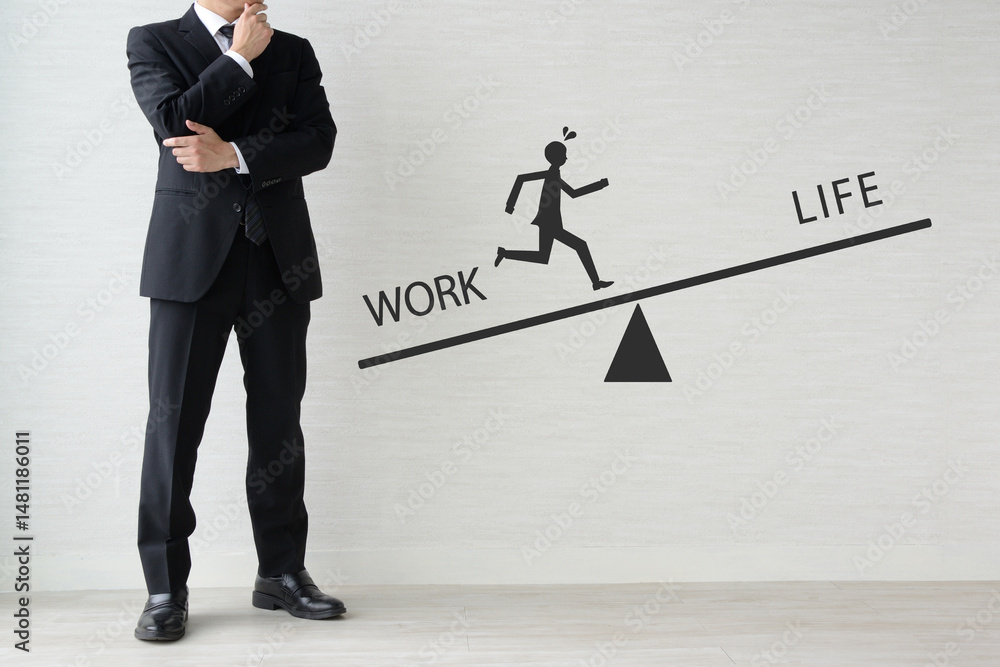 仕事の方に傾いたワークライフバランスについて考えるビジネスマン