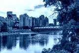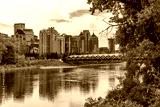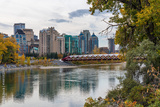Prince's Island Park Peace bridge. Autumn foliage scenery in downtown Calgary Bow river bank, Alberta, Canada.
