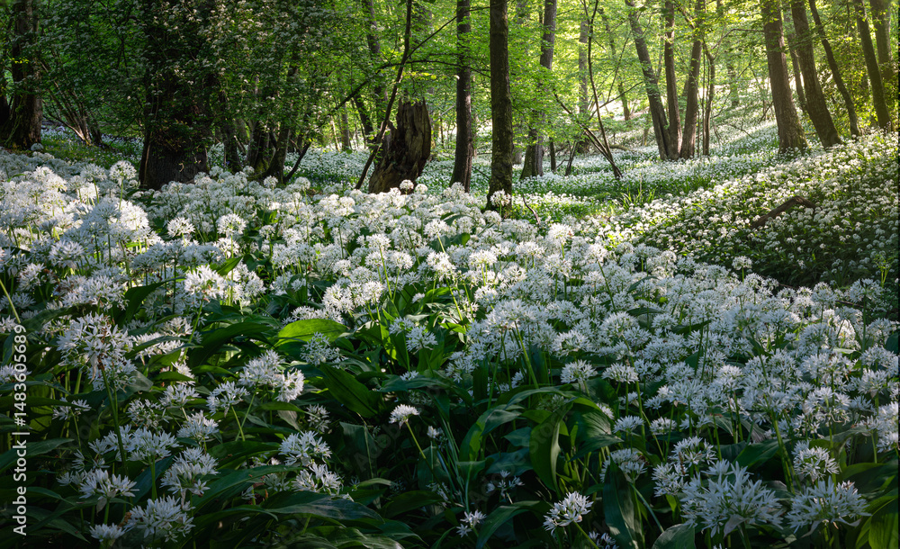 Garlic woodland on the high weald near Mountfield in east Sussex south east England UK