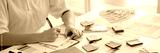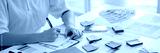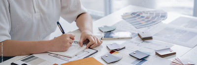 Architects interior designer hands working with Blueprints and documents for a home renovation for house design