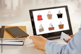 Woman Shopping for Handbags Online Using Credit Card and Tablet – E-Commerce and Fashion Concept