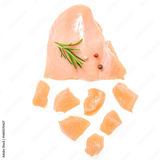 Raw chicken fillet pieces isolated on white background. Chicken meat. Top view