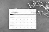 Desk calendar for January 2026 year with gold cherry blossoms branch.