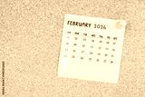 Yellow calendar sheet for February 2026 with thumbtack on board.