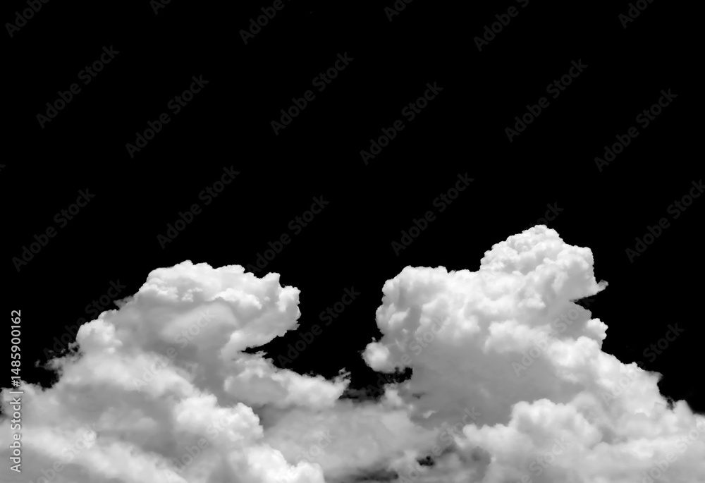 Set of white clouds or fog for design isolated on black background.