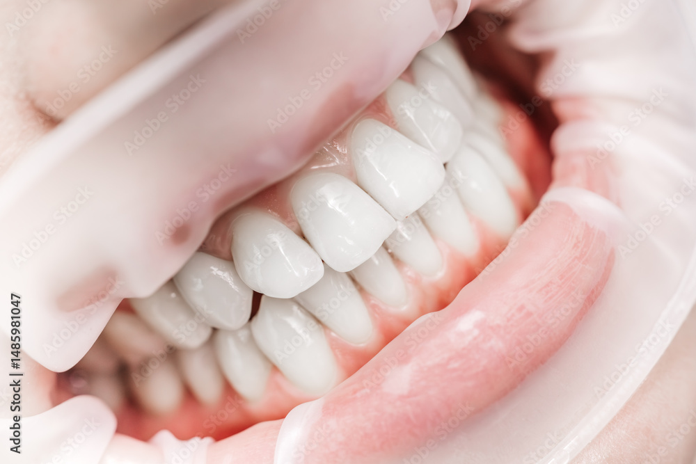 Close-up of a young woman's teeth. Concept of dentistry, beautiful and healthy smile.