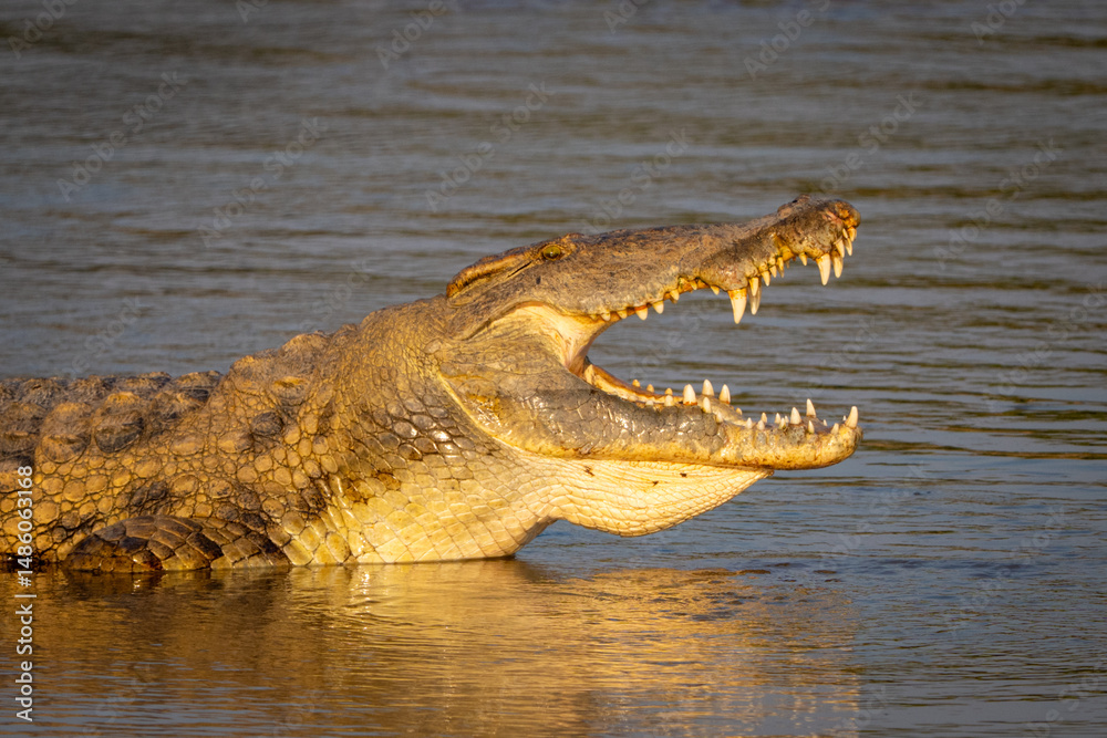 Close-up of Nile crocodile lying in shallows