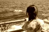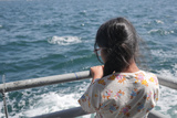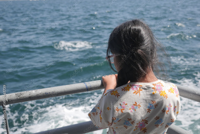 Young girl enjoying boat ride on calm ocean waves