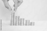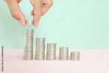 Hand choose coin stacked graph for money savings growth real estate or plan ideas and investment planning goal to growth and bank home loan or financial insurance.