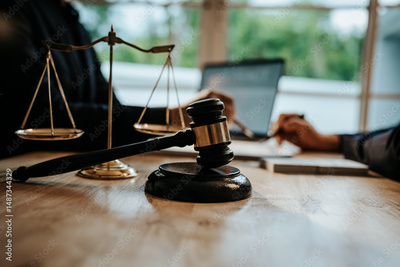 A professional lawyer reviews and signs a legal contract at the office, offering expert advice and assistance on justice and finance.
