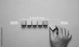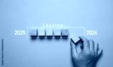 A hand places the final wooden block in a progress bar marked “Loading…” between the years 2025 and 2026, symbolizing transition, planning, and progress into the new year concept.