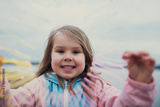 funny girl playing with rainbow spring