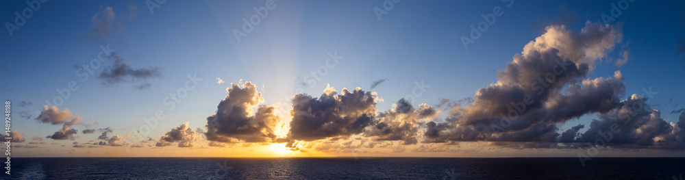 Dramatic Sunset Cloudscape Over the Pacific Ocean With Vibrant Sky and Tranquil Waters