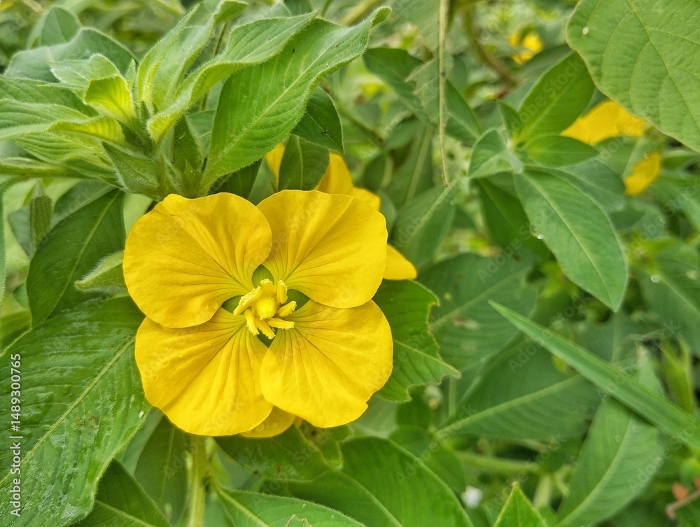 Peruvian primrose-willow flower (Ludwigia peruviana) blossom in outdoor garden