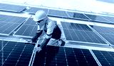 Engineer Performing Solar Panel Installation on Commercial Roof