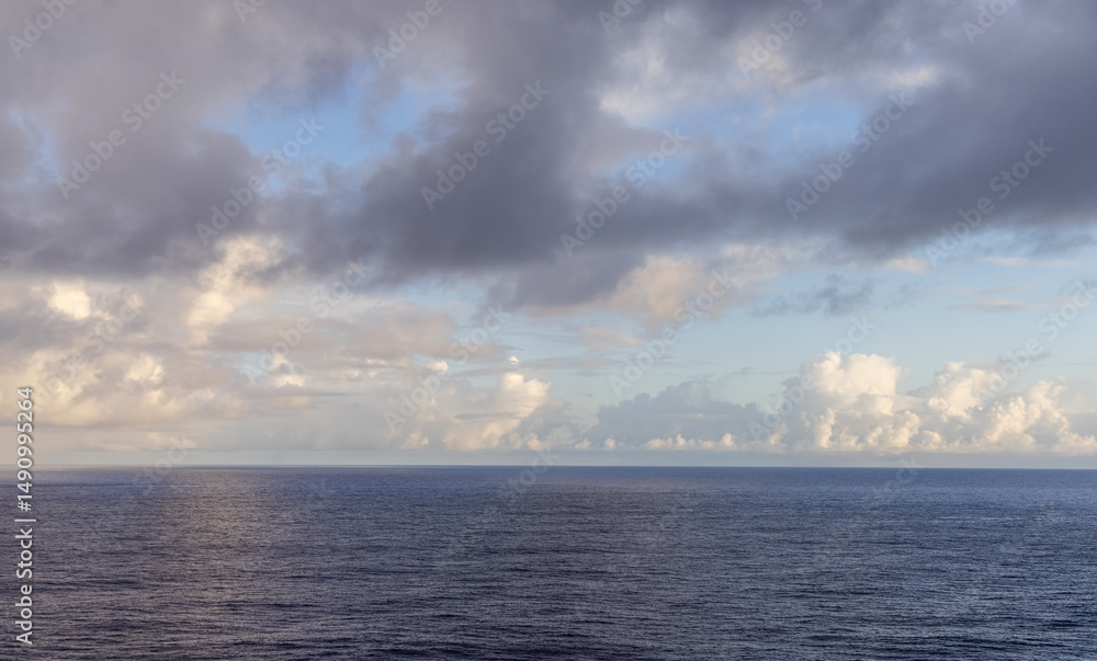 Overcast Sky and Calm Pacific Ocean on a Serene Day