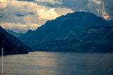 Alpine mountains in Switzerland. Hiking in the Swiss Alps mountains during summer, hiking trail in Switzerland. Lake in the Swiss Alps. Panoramic of the nature and mountains of Switzerland.