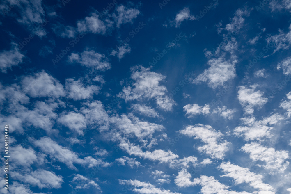 White fluffy clouds background. Blue sky with white cloud. Background of sky with clouds. Stunning sky with white clouds. Soft cloud drifting. Peaceful sky with sunlight glow.
