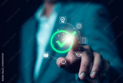 Hand shows sign of top service Quality assurance, Guarantee, Standards, ISO certification and standardization concept, satisfaction, service experience, show the standards of products and services.