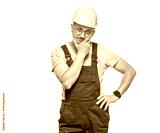 Ashamed construction worker covering face with hand. Shame, isolated on white background. Guilty repairman. Craftsman against white wall