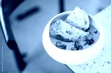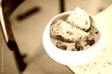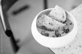 A bowl of creamy soup garnished with fresh green herbs, served alongside two slices of crusty bread on a marble countertop. Warm, homemade comfort food, perfect for lunch or dinner